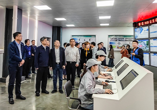 图为邵阳市委书记严华陪同院士、专家一行莅临熊猫体育官方网站 智能制造(邵阳)有限公司参观调研指导工作。